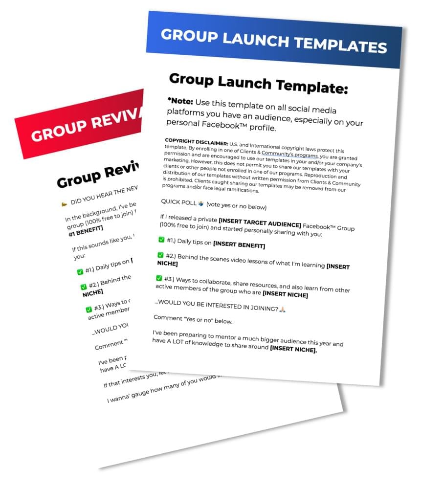 Get a surge of new group members quickly by deploying our copy & paste group launch (or revival) templates.